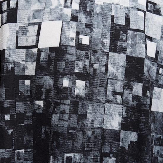 モザイクブロックのような個性的なデザインを全面プリントされており、