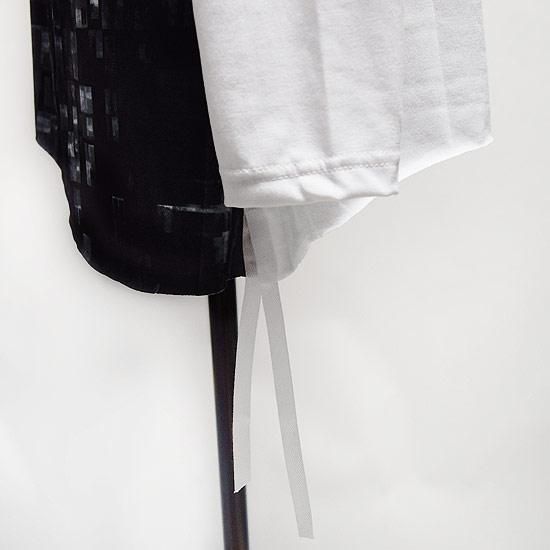 裾部はアーチ上の変形シルエットにサイドの裾部にはドローコードも施されるなど、