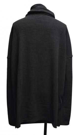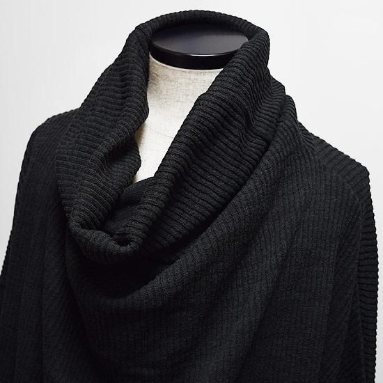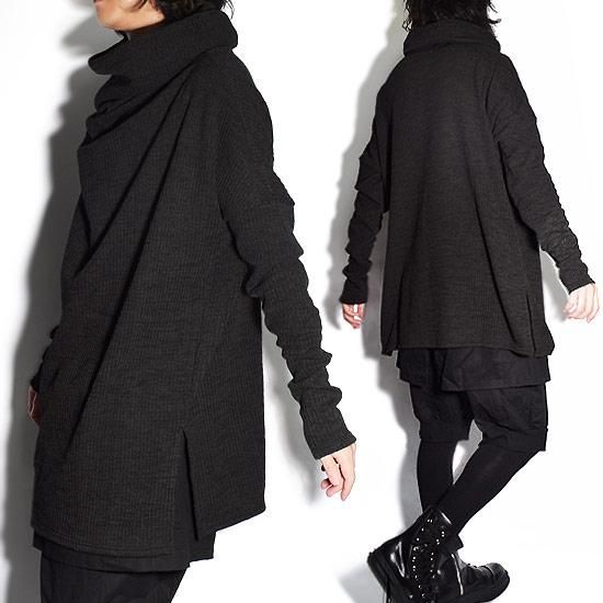 モード系スタイル鉄板のロング丈ドレープニットソーになります。