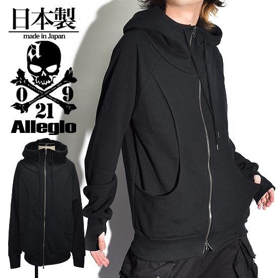 Alleglo 日本製 変形ボリュームネック&指抜きグローブパーカー ブラック/黒