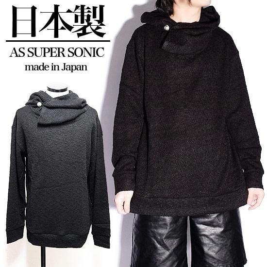 as super sonic 日本製 変形ハイネックビッグシルエットニットソー ブラック/黒