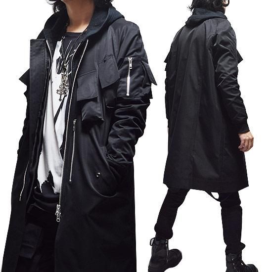 Alleglo×CROWS 多重ポケットMA-1ラグランロング丈ガスマスクジャケット