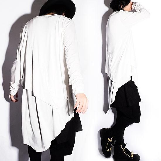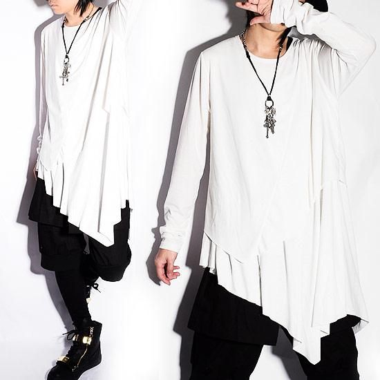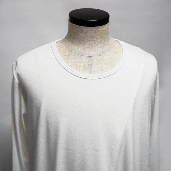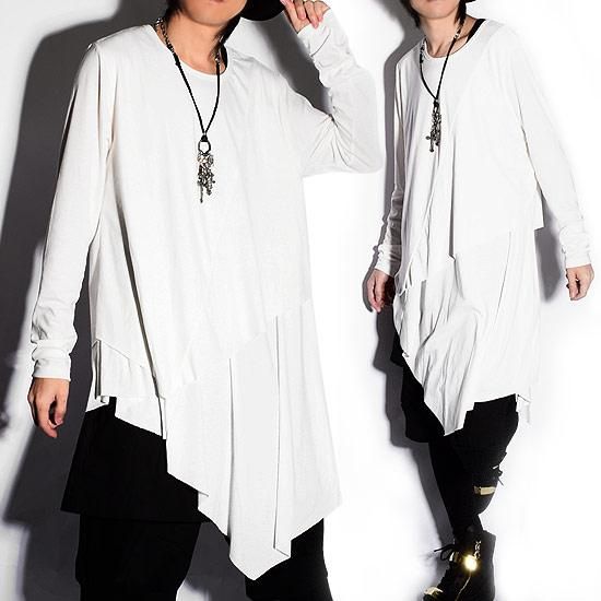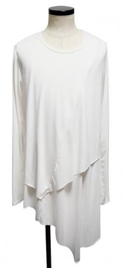 Alleglo 日本製 重ね着風アシメドレープロング丈カットソー (長袖カットソー) ホワイト/白