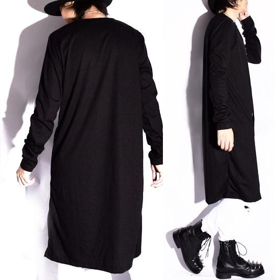 Alleglo 日本製 変形カットスーパーロング丈カットソー(長袖カットソー) ブラック/黒