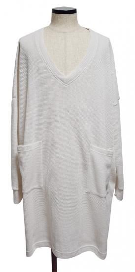 Alleglo 日本製 ポケット付きVネックロング丈カットソー(長袖カットソー)ホワイト/白