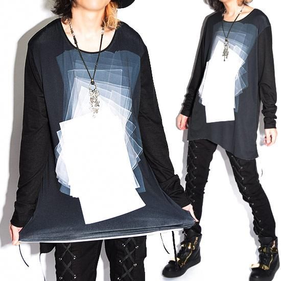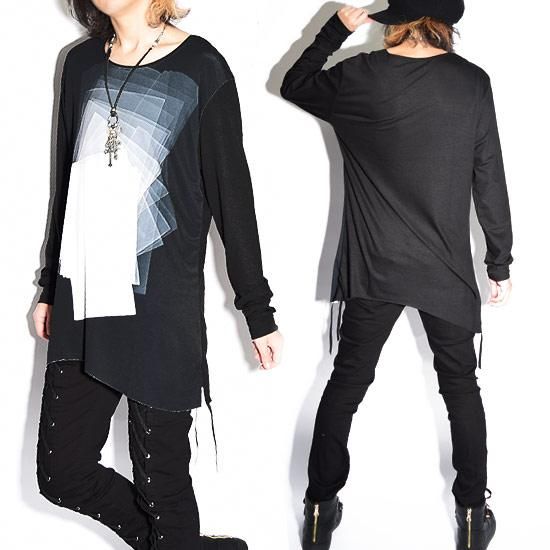 Alleglo 日本製 幾何学プリントロング丈カットソー(長袖カットソー) ブラック/黒