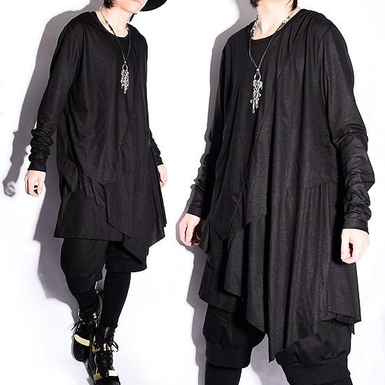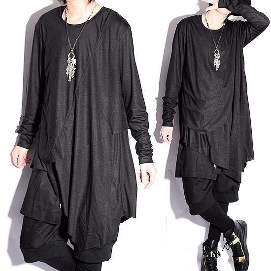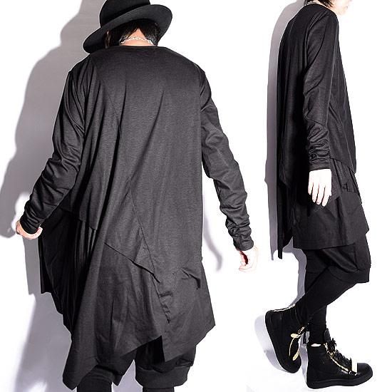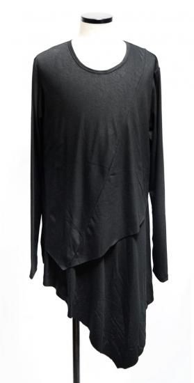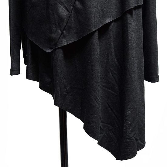 Alleglo 日本製重ね着風アシメドレープロング丈カットソー(長袖カットソー)ブラック/黒