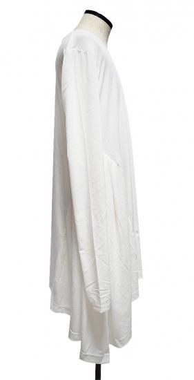Alleglo 日本製ドレープ切替アシンメトリーロング丈カットソー(長袖カットソー)ホワイト/白