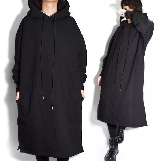 Alleglo(アレグロ) 日本製 ワンピースデザイン裏毛防寒ロングパーカー ブラック/黒