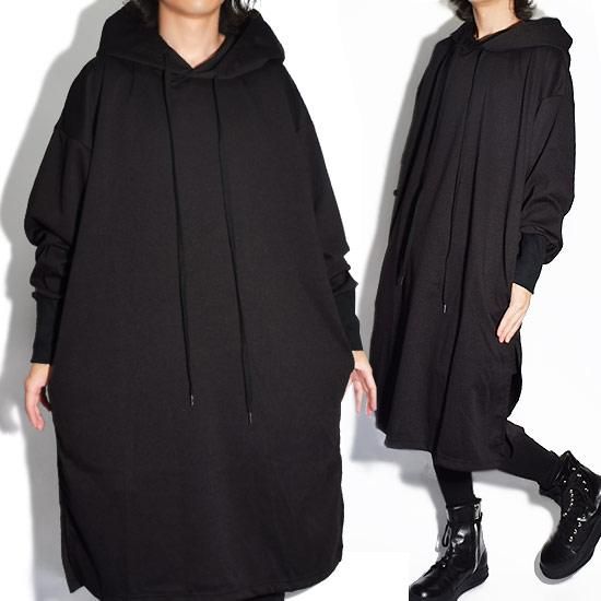 Alleglo(アレグロ) 日本製 スーパーロング丈ワンピースパーカー ブラック/黒