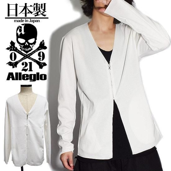 Alleglo 日本製 フロントZIP切りっ放しカーディガン ホワイト/白