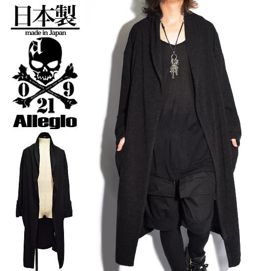 Alleglo 日本製 ショール襟ロングコーディガン ブラック/黒