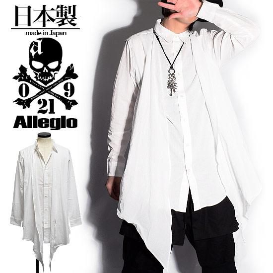 Alleglo 日本製 カーディガン風フェイクレイヤードロングシャツ ホワイト/白