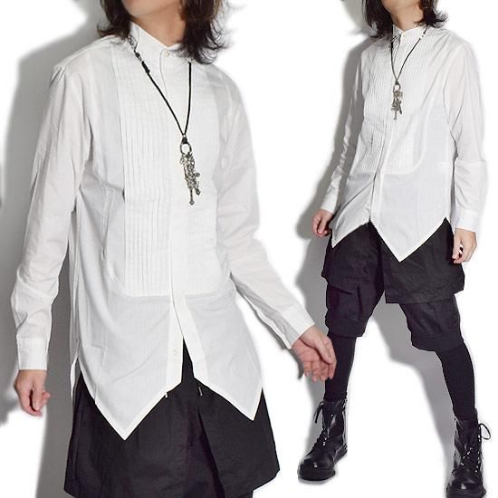 Alleglo 日本製 ウィンドカラープリーツデザインドレスシャツ ホワイト/白
