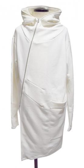 Alleglo(アレグロ) 日本製 変形アシンメトリー斜めZIPボリュームネックパーカーー ホワイト/白