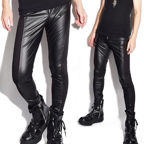 Alleglo 日本製 PUレザー生地切替ストレッチスキニーレギンスパンツ ブラック/黒