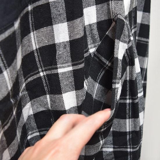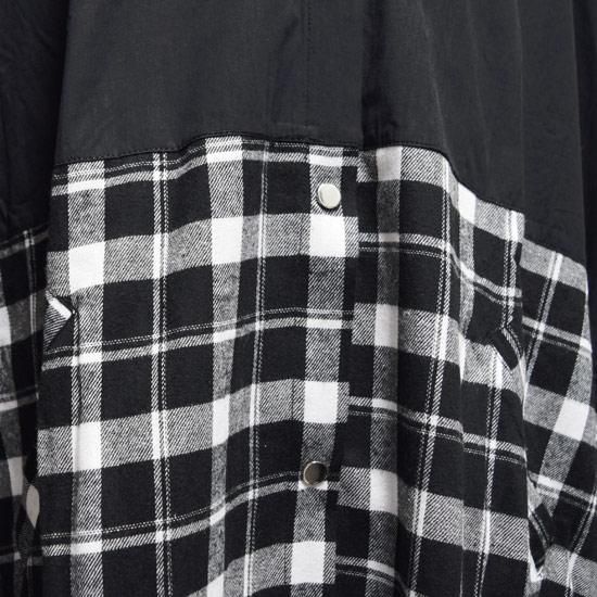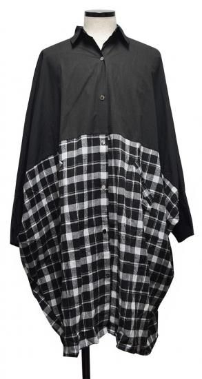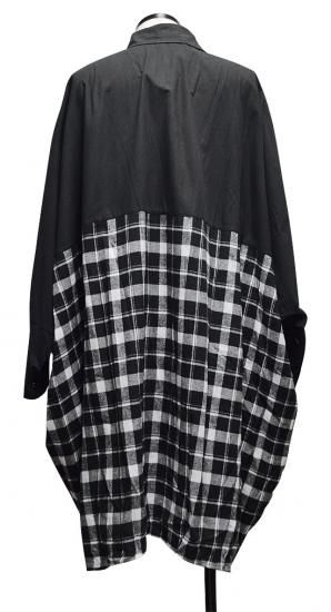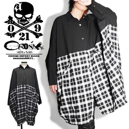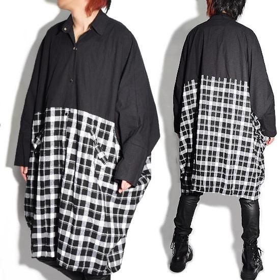 Alleglo×CROWS 変形チェック切替バイカラービッグシルエットシャツワンピース ブラック/黒