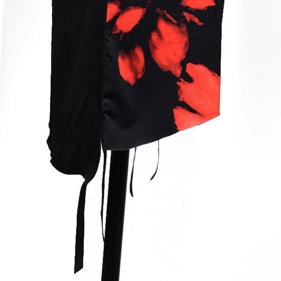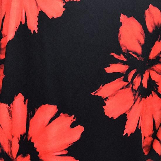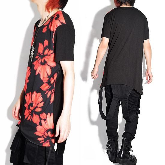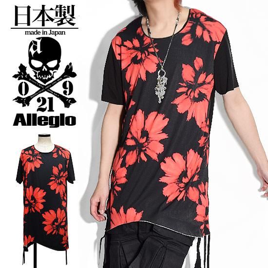 Alleglo 日本製 フラワービッグプリント&サイドコード切替Tシャツ(半袖カットソー) ブラック/黒