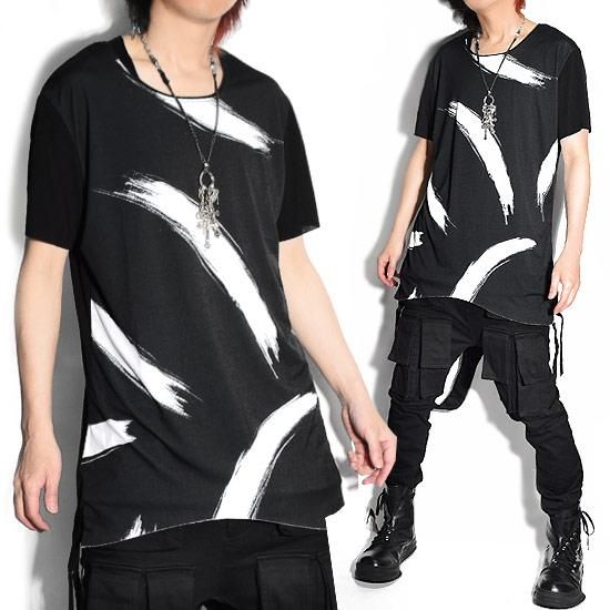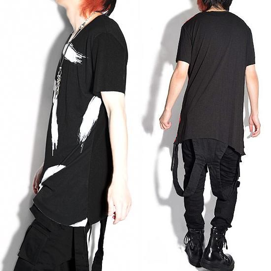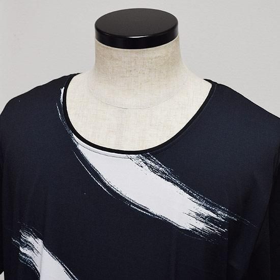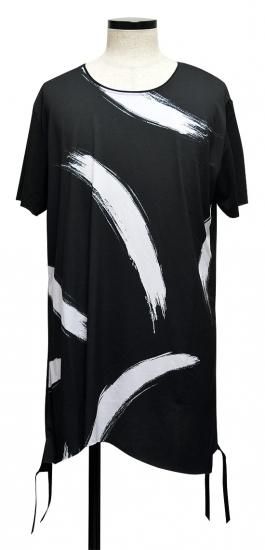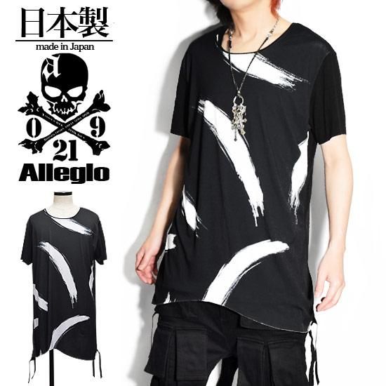 Alleglo 日本製 インクラインプリント&サイドコード切替Tシャツ(半袖カットソー) ブラック/黒