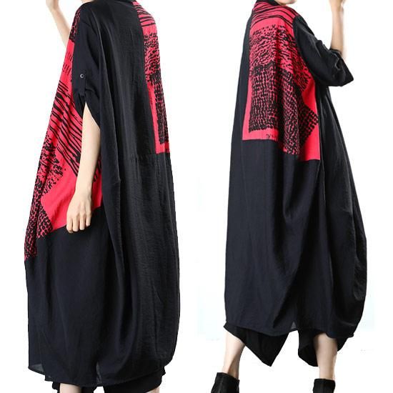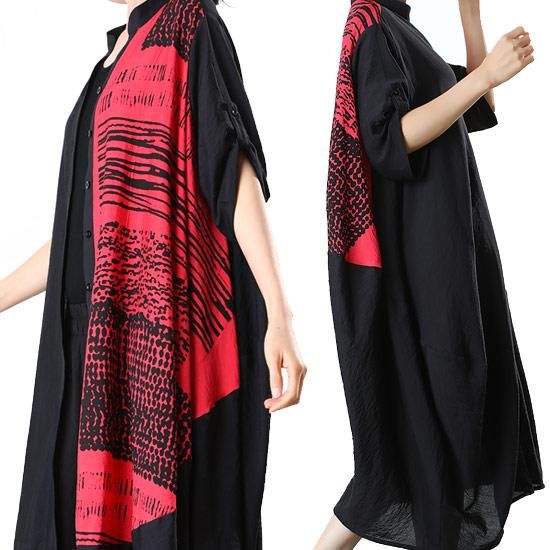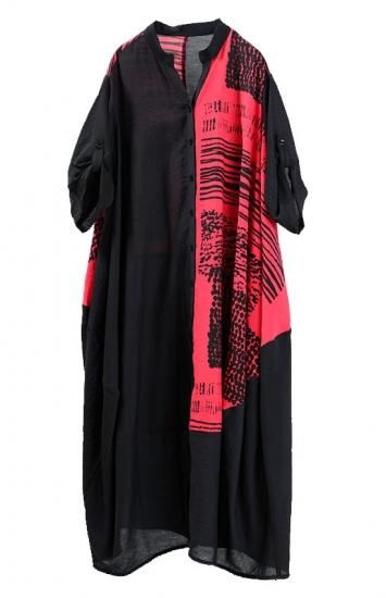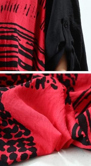 [Alleglo×CROWS]レッド幾何学プリント切替スーパーロングシャツ