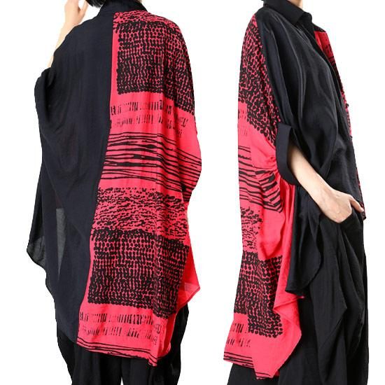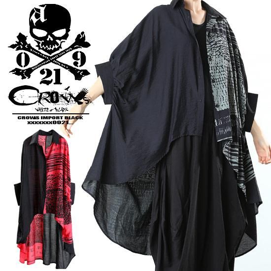 [Alleglo×CROWS]幾何学プリント切替アーチシルエットロングシャツ