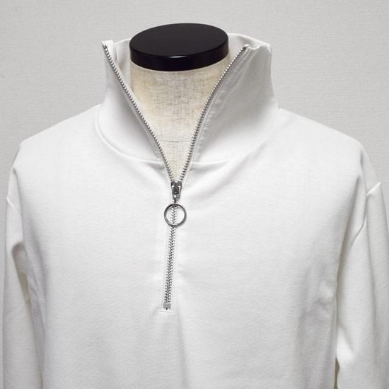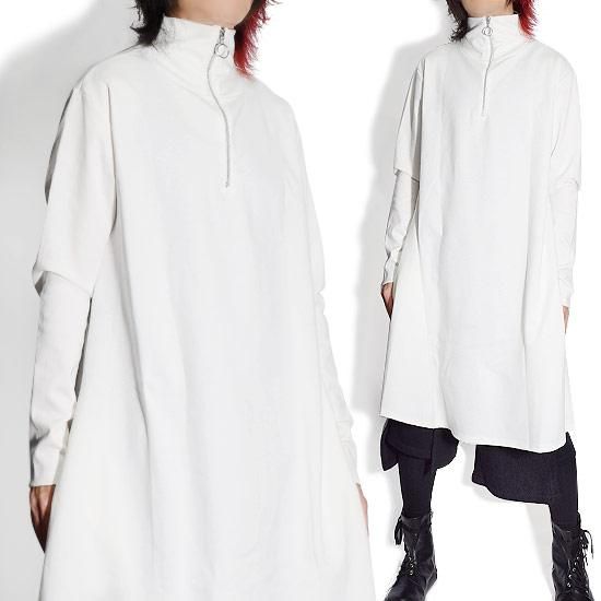 Alleglo 日本製 ハイネックジッパー切替ロングワンピースカットソー ホワイト/白