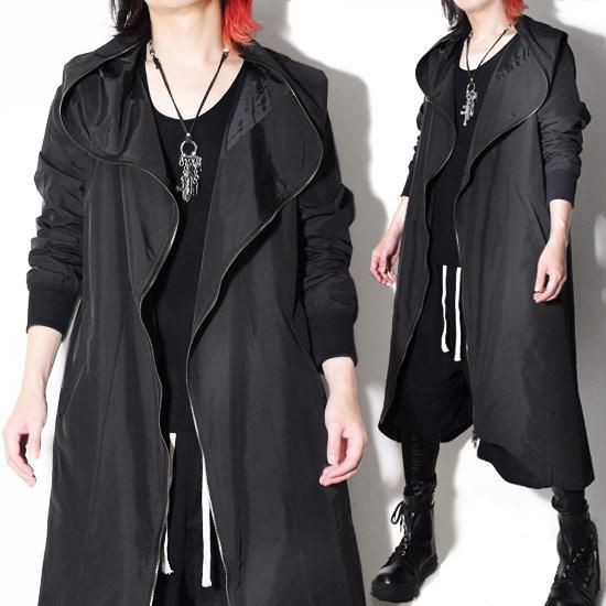 Alleglo 日本製 変形フードフルジップスーパーロングモッズコート ブラック/黒