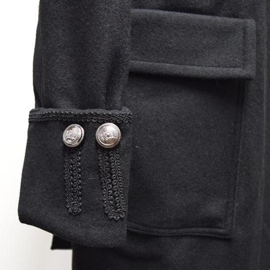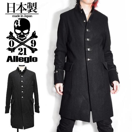 Alleglo 日本製 ハイネック&刺繍デザインロングウールコート ブラック/黒