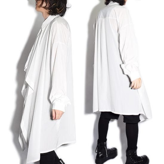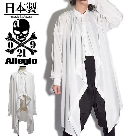 Alleglo 日本製 変形ドレープ&アーチシルエットロングシャツ ホワイト/白