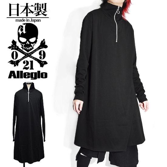Alleglo 日本製 ハイネックジッパー切替ロングワンピースカットソー ブラック/黒