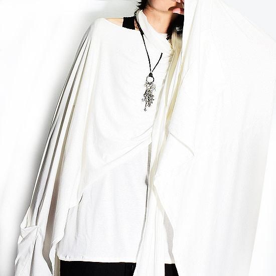 Alleglo 日本製 ドレープシルエット&ストール風ポンチョカットソー ホワイト/白