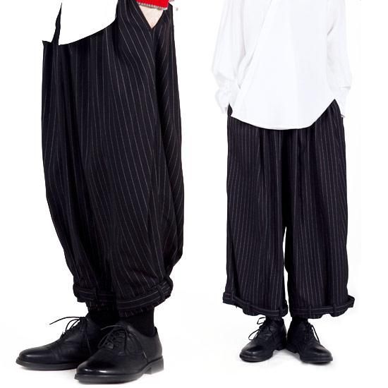 Alleglo×CROWS 裾ベルト付きストライプワイドガウチョパンツ ブラック/黒