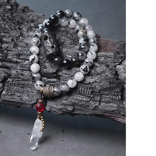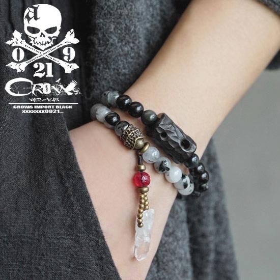 Alleglo×CROWS 黒クリスタル石&水晶石ブレスレット