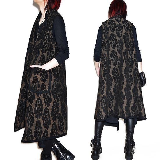 [Alleglo×CROWS]裏地キルティング切替薔薇ドレープカーディガン