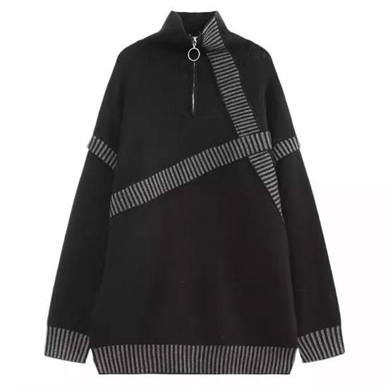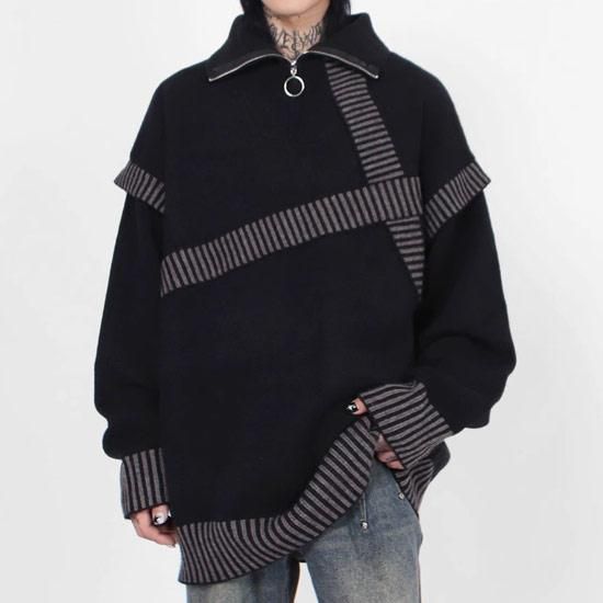 変形ライン生地切替ニットブルゾン メンズ モード系 セーター V系 ブルゾン ヴィジュアル系 ファッション