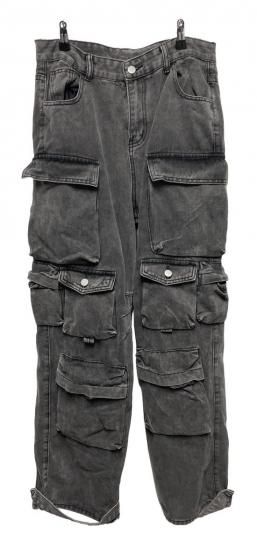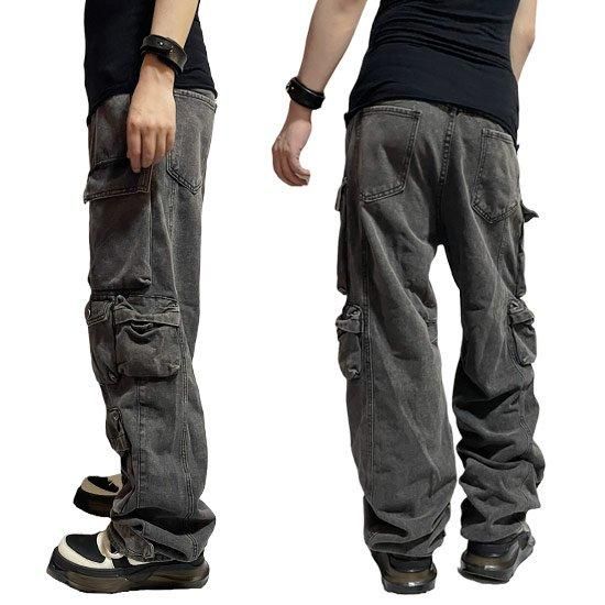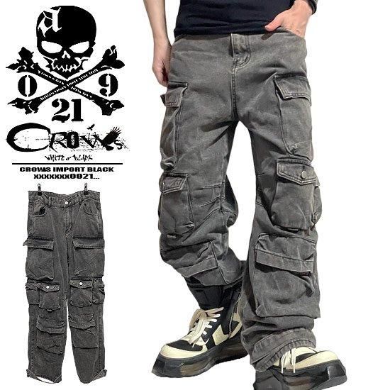 Alleglo×CROWS 多重ポケットデザインカーゴデニムパンツ メンズ モード系 メンズ パンツ V系 パンツ ヴィジュアル系 ファッション カーゴパンツ