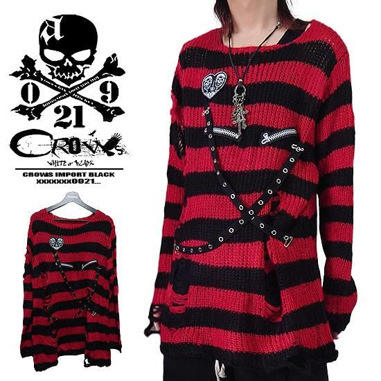 [Alleglo×CROWS]ダメージ&パンクボーダーニットソー