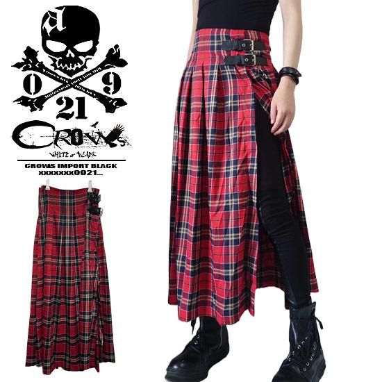 [Alleglo×CROWS]2ベルトデザインスリットロングチェックスカート