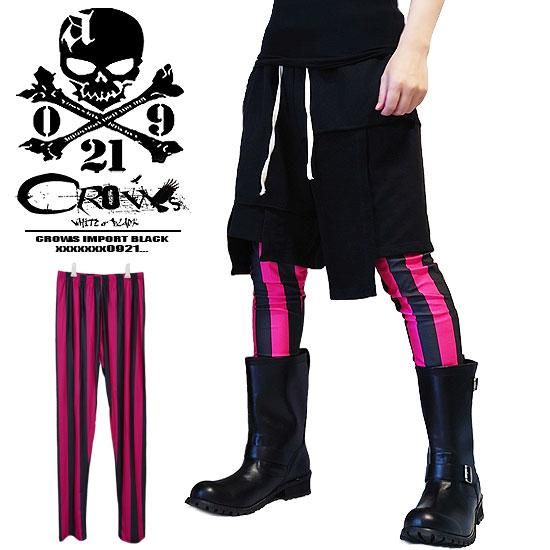 [Alleglo×CROWS]ピンク×ブラックストライプデザインレギンス