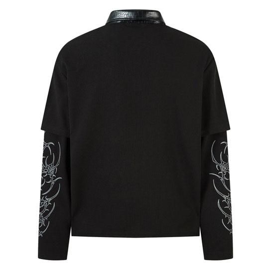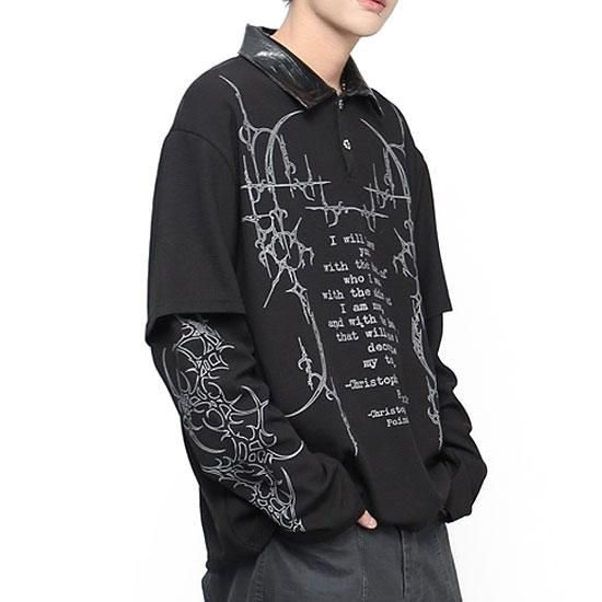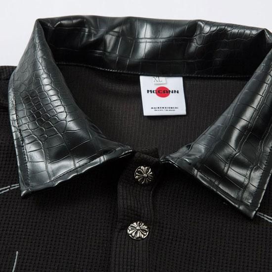 [CROWS 30 SELECT]PUレザー切替フェイクレイヤードポロシャツ