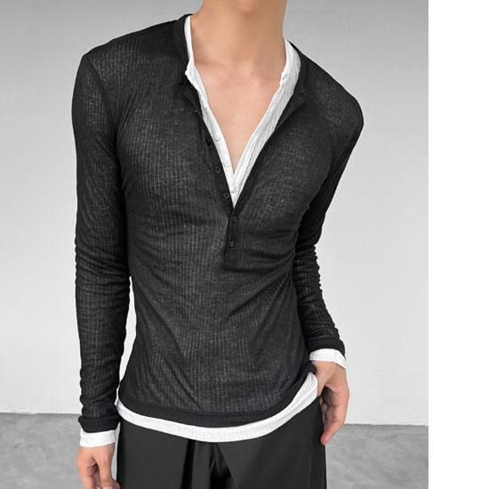 [CROWS 30 SELECT]シースルーヘンリーネックカットソー