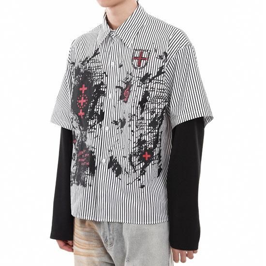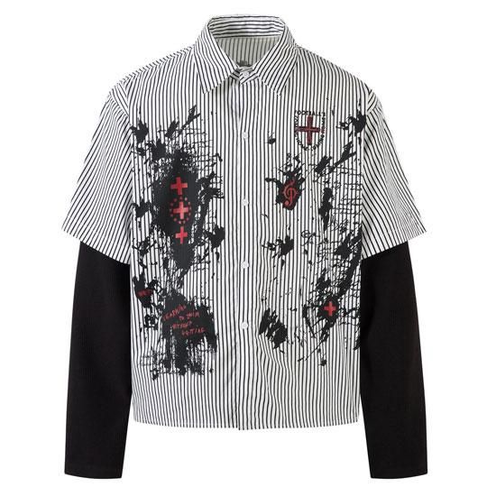 [CROWS 30 SELECT]ゴシック×ストライプ重ね着風シャツ
