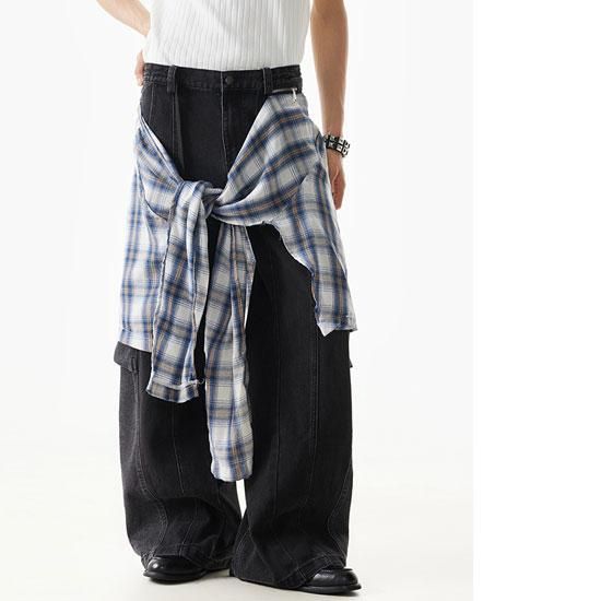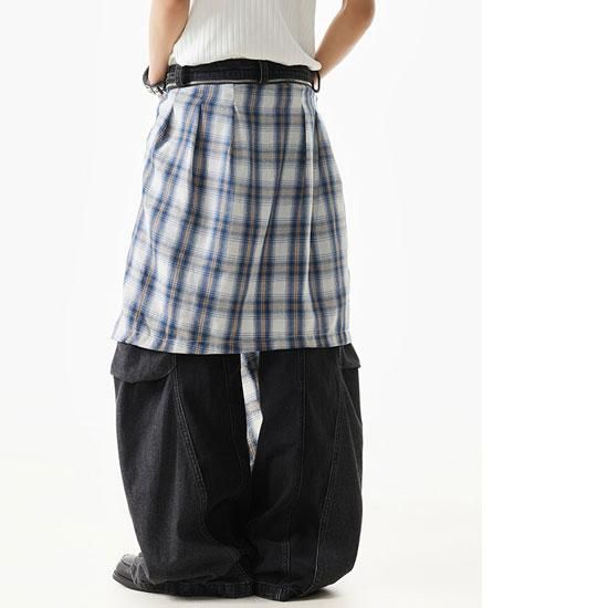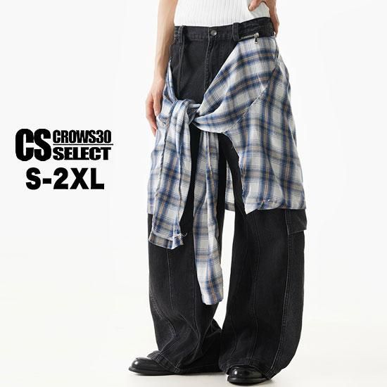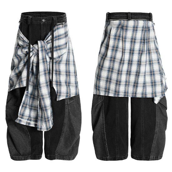 [CROWS 30 SELECT]巻きチェックスカート風切替ワイドパンツ