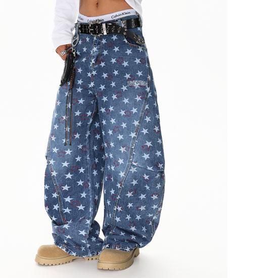 [CROWS 30 SELECT]スター総柄ワイドデニムパンツ