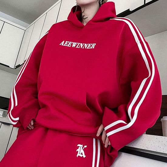 人気のライン×ロゴビッグパーカーに、