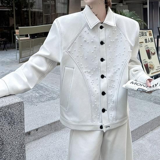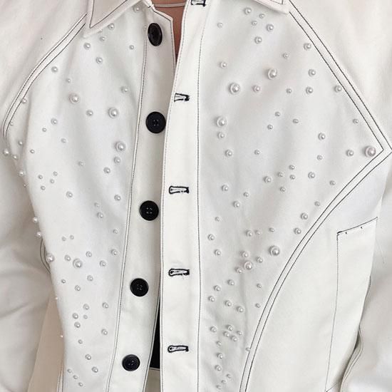 個性的なステッチにビーズを多数施したデニムジャケットに、