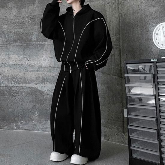 個性的なパイピングラインパーカーに、