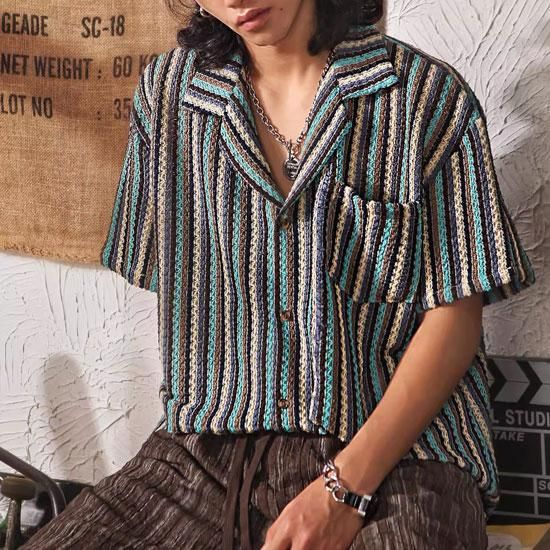 印象的なサマーニットシャツ。