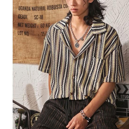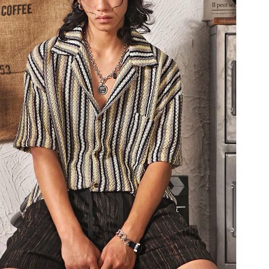 [CROWS 30 SELECT]ボーダーストライプサマーニットシャツ