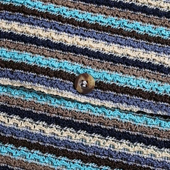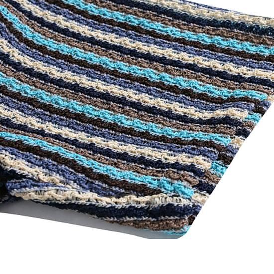 立体感のある編み地とブルー系のボーダーが